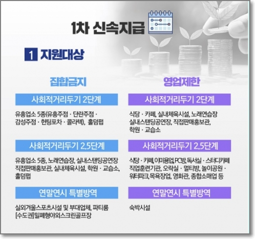 ※ 단, 유흥주점, 콜라텍은 집합금지·영업제한 업종으로 지원대상에 포함