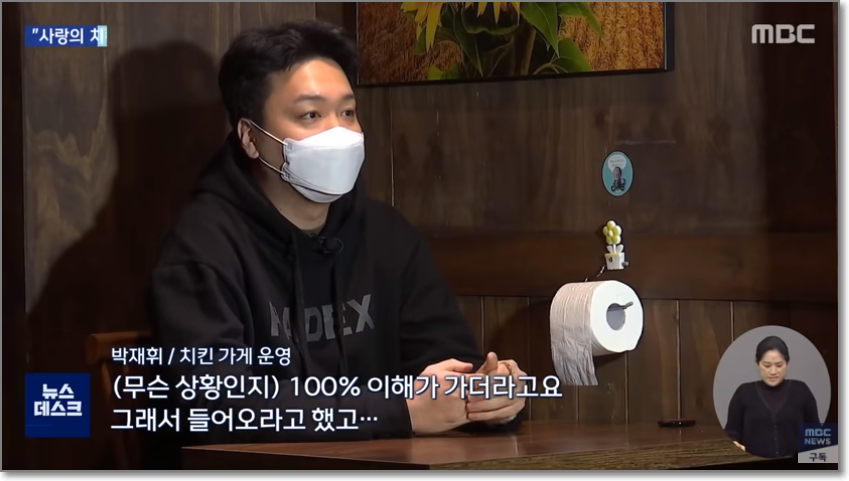 그렇게 형제는 집에서 약 30분 거리인 서교동까지 걸었고 박재휘 점주의 가게 앞까지 이르게 됐다. 당시 박 씨는 가게 앞에서 ‘치킨’을 외치는 동생과 이를 바라보는 형을 보고 사정을 짐작했다. 둘을 안으로 들어오게 한 박 씨는 치킨 세트 메뉴와 콜라 두 병을 제공했다.