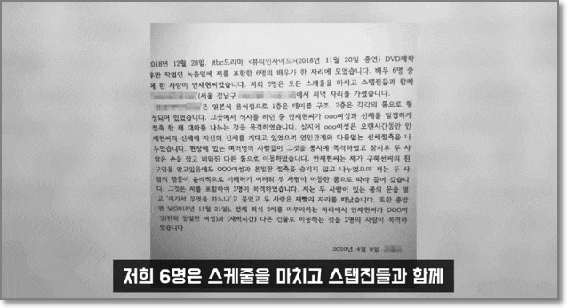 그리고 2차 회식을 마무리하는 자리에서는 새벽시간에 다른 건물로 이동하는 것을 두 명의 사람이 목격했다는 내용입니다.