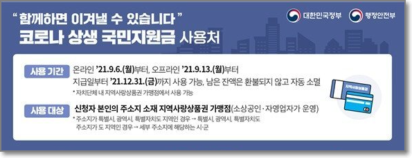 5차 재난지원금 사용기간: 2021년 12월 31일까지