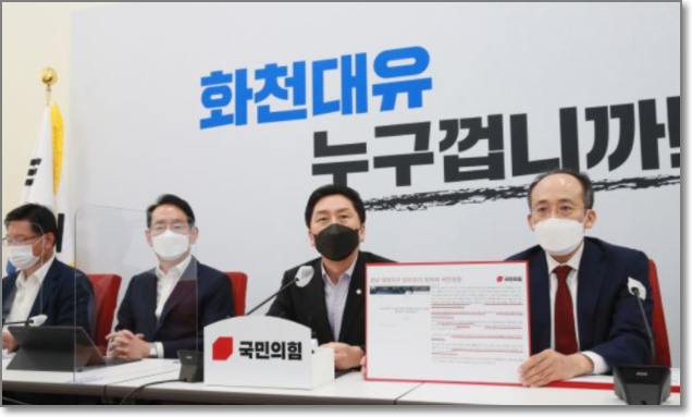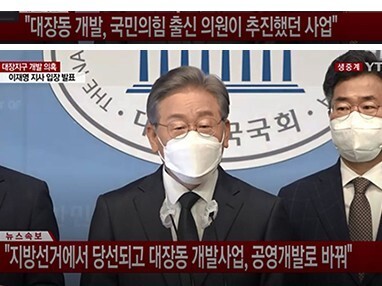 그리고 대장동 택지개발은 공영개발인데 국민의힘이 민간개발로 추진하고 있었습니다.