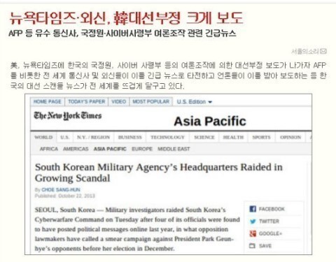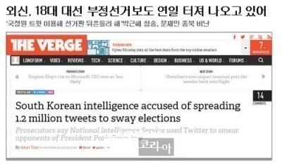 박근혜 국정원의 대선 개입 불거졌을 때도 해외 언론은 주요 뉴스로 보도하였지만