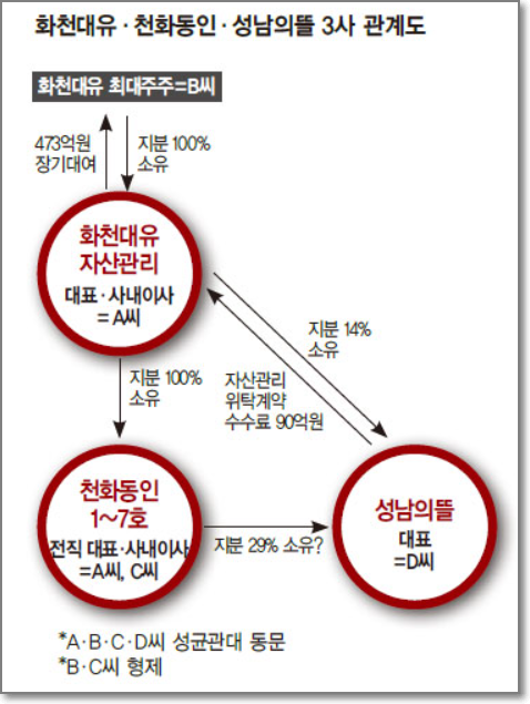 화천대유 천화동인 성남의뜰 관계
