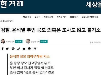 윤석열 가족 비리는 침묵하거나 귀퉁이 뉴스로 짤막 보도하고 말았습니다.