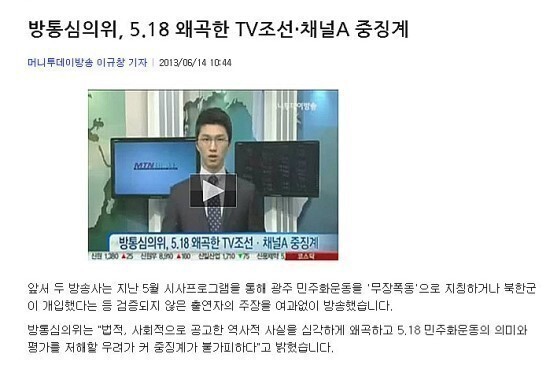 군사독재를 옹호하기 위하여 518민주화를 북한 개입한 폭동으로 허위 왜곡 보도 하는 등
