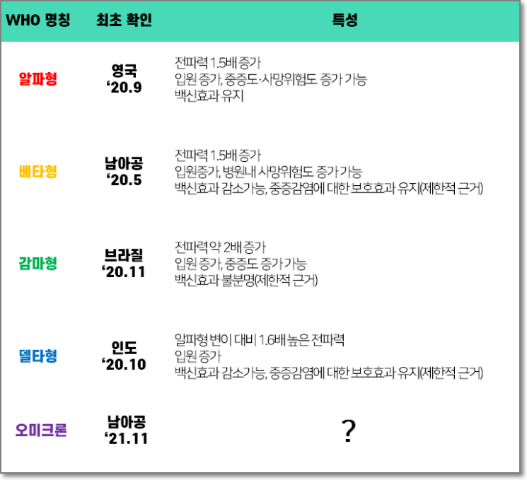 코로나19의 새로운 변종인 ‘오미크론(Omicron)’ 등장으로 기존에 개발된 백신에 대한 무력화 될 수 있다는 가능성이 제기되고 있다. 기존 코로나19 변이 우세종인 ‘델타’는 감염 전파와 백신