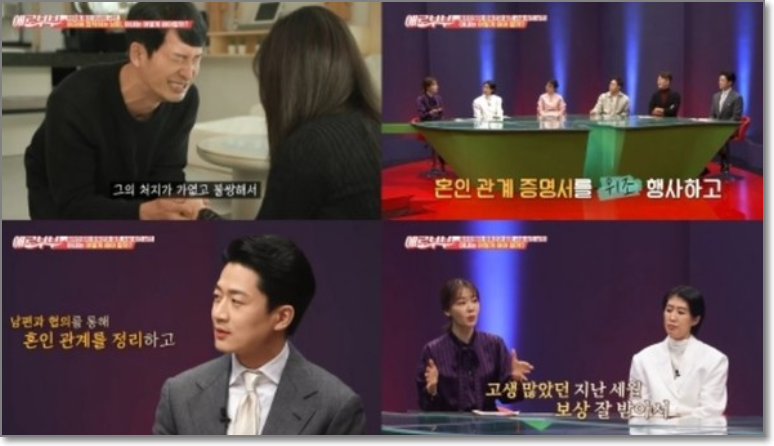그 와중에도 남편의 '법적인 아내'는 상간자 소송을 걸고, 집까지 들어와 사연자를 괴롭혔습니다. 결국 남편이 그녀에게 15억원짜리 아파트를 넘기며 이혼도장을 찍고 마무리되는 듯했으나, 아내 앞에는 끝없이 남편의 과거 여자들이 등장했습니다.
